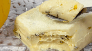 - Coloque tudo em um prato fundo e adicione o leite condensado, a canela em pó e o gelo, mexa por alguns segundos e leve a geladeira por 30 minutos