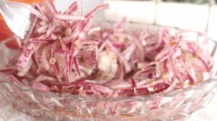 - 1 cebola pequena fatiada em rodelas finas